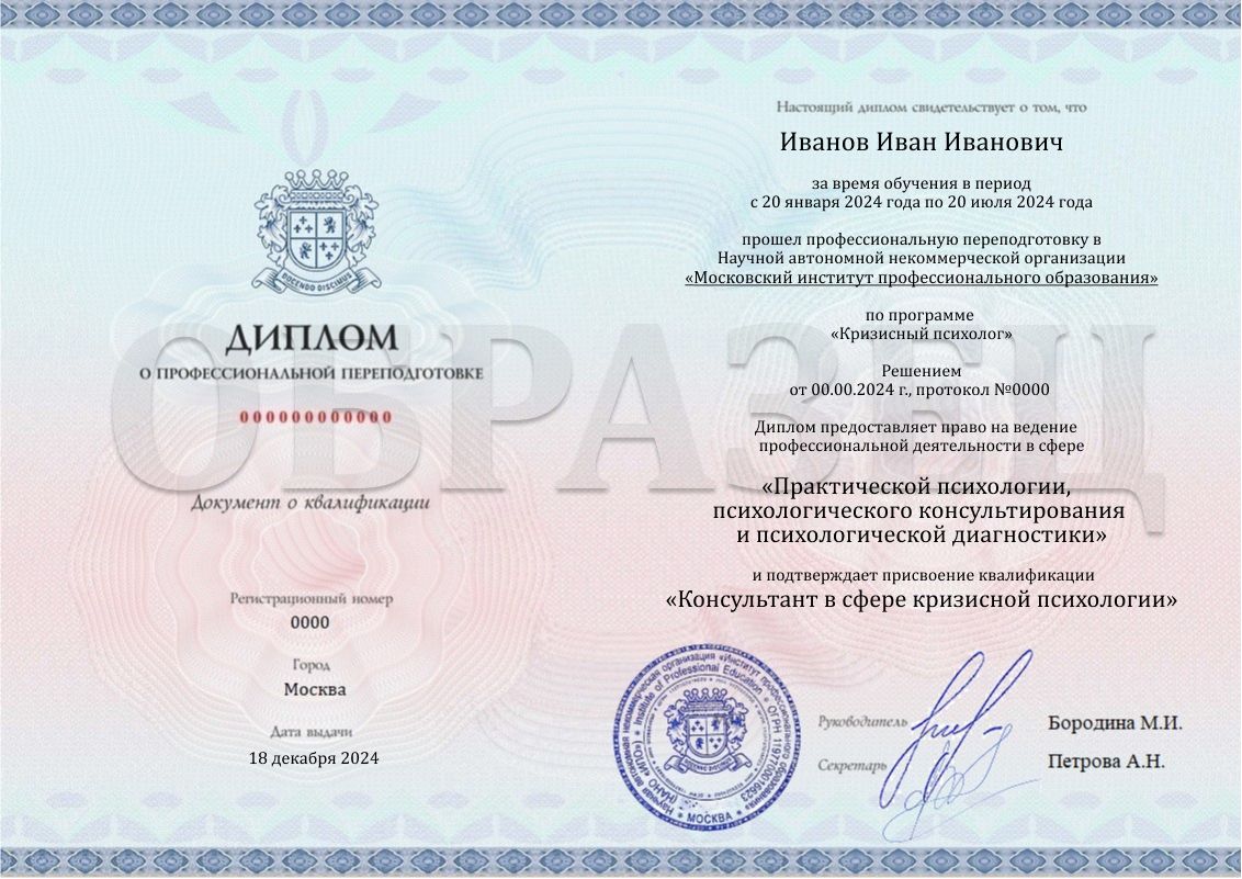 После успешного прохождения программы вы получаете Диплом о профессиональной переподготовке установленного образца. Это официальный документ, который вносится в реестр ФИС-ФРДО и дает право на осуществление профессиональной деятельности в выбранной сфере.