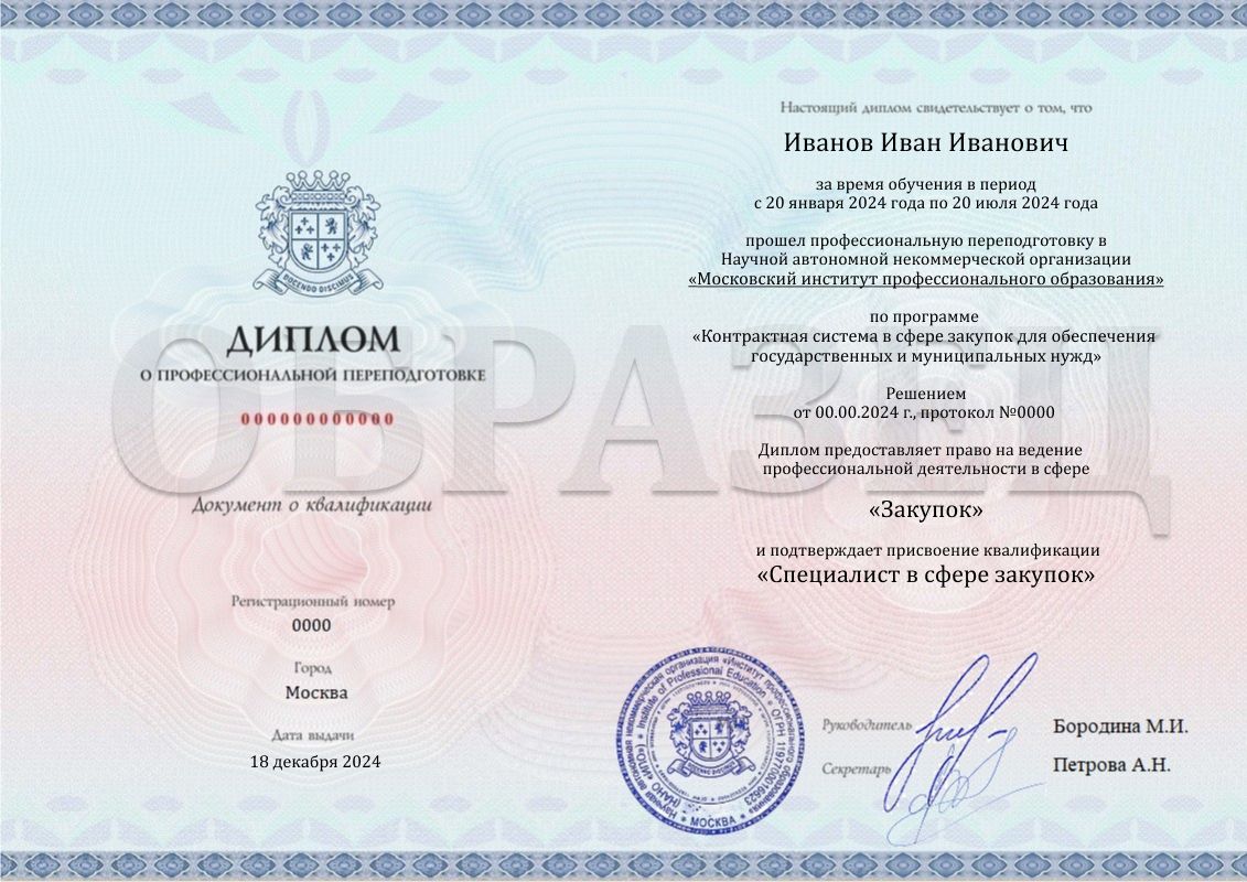 После успешного прохождения программы вы получаете Диплом о профессиональной переподготовке установленного образца. Это официальный документ, который вносится в реестр ФИС-ФРДО и дает право на осуществление профессиональной деятельности в выбранной сфере.